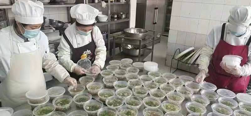 食堂班長蔣玉斌說,“大家都在一線奮斗著,我們也不能放松,要用最擅長的方式為抗擊疫情做力所能及的事?!痹谒膸ьI(lǐng)下,食堂班有需要照顧92歲高齡老父親依然堅持在崗的董玥同志,有將幼小的孩子交給年邁的父母照看的王迎華同志,還有自身傷病卻依舊堅守崗位的于銳同志,他們每天24小時不離崗,舍小家顧大家,在保障基層一線職工營養(yǎng)均衡、葷素搭配、水果酸奶充足供應(yīng)的基礎(chǔ)上及時調(diào)整菜譜,默默用實際行動為疫情防控工作貢獻自身力量。