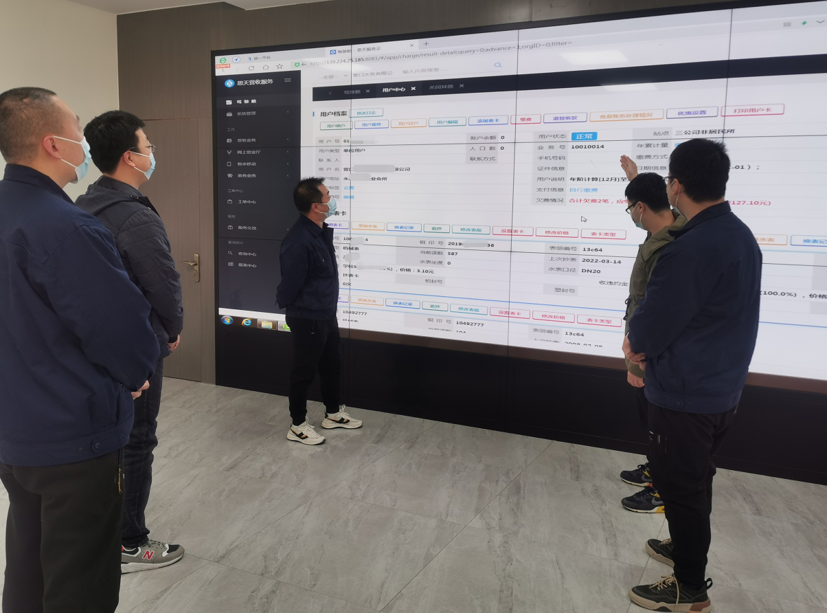 智慧水務(wù)項(xiàng)目營(yíng)業(yè)收費(fèi)系統(tǒng)上線進(jìn)入關(guān)鍵階段,為不影響項(xiàng)目推進(jìn),5位信息管理員不分晝夜的對(duì)著電腦屏幕,接口調(diào)試、數(shù)據(jù)核對(duì)、聯(lián)網(wǎng)測(cè)試,保證了系統(tǒng)按時(shí)上線。
