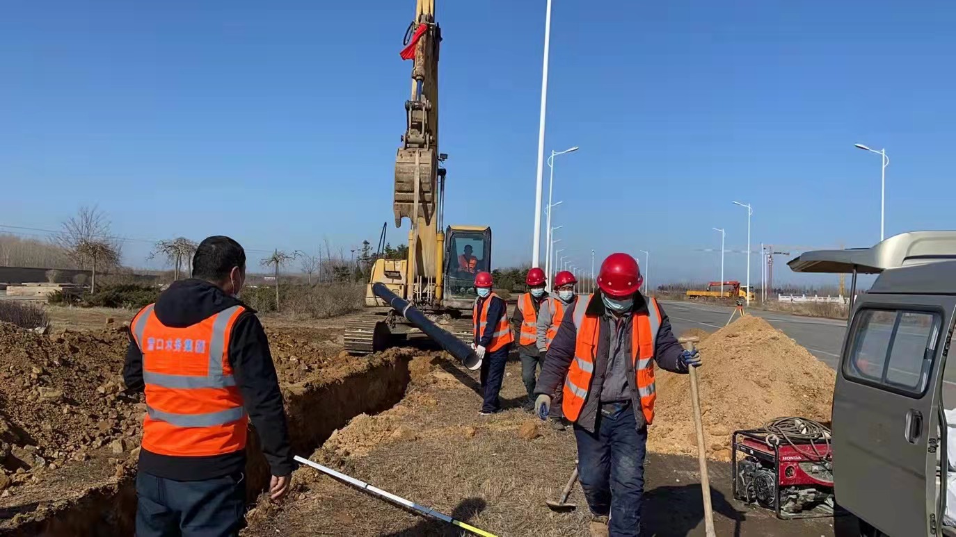 通達(dá)公司施工人員、機械和設(shè)備連夜進駐營口市健康驛站項目施工現(xiàn)場,提前做好施工前的一切準(zhǔn)備工作。工地上,在寒風(fēng)凜冽的現(xiàn)場,發(fā)動機轟鳴聲不斷,吊車、鏟車、挖溝機忙個不停,全體人員抓進度、搶工期、保質(zhì)量,顧不上吃一口熱乎飯、喝一口熱乎水;指揮室內(nèi),設(shè)計人員根據(jù)施工技術(shù)人員現(xiàn)場反饋的問題如火如荼地討論修正著設(shè)計圖紙……時間緊、任務(wù)重,項目建設(shè)現(xiàn)場的每一個人,都仿佛上了發(fā)條一般,鉚足干勁,力爭在最短時間內(nèi)完成供水項目建設(shè)。