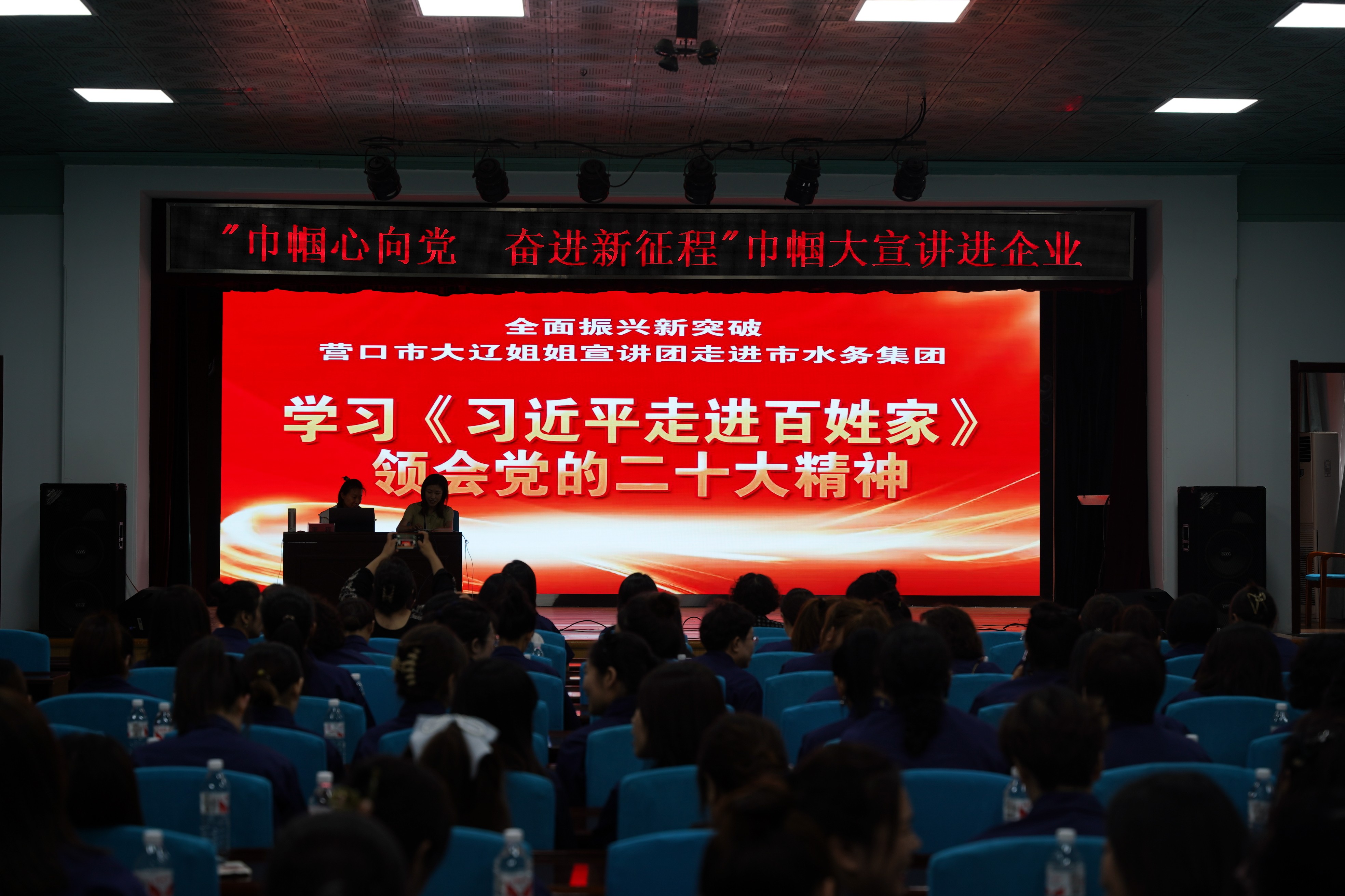 為深入學(xué)習(xí)宣傳貫徹黨的二十大精神,做好學(xué)習(xí)貫徹習(xí)近平新時代中國特色社會主義思想主題教育預(yù)熱升溫,6月29日上午,水務(wù)集團(tuán)與婦聯(lián)開展共建活動,邀請大遼姐姐宣講團(tuán)成員、營口市委黨校李程老師走進(jìn)企業(yè)開展“巾幗心向黨 奮進(jìn)新征程”大宣講,100余名女職工參會。