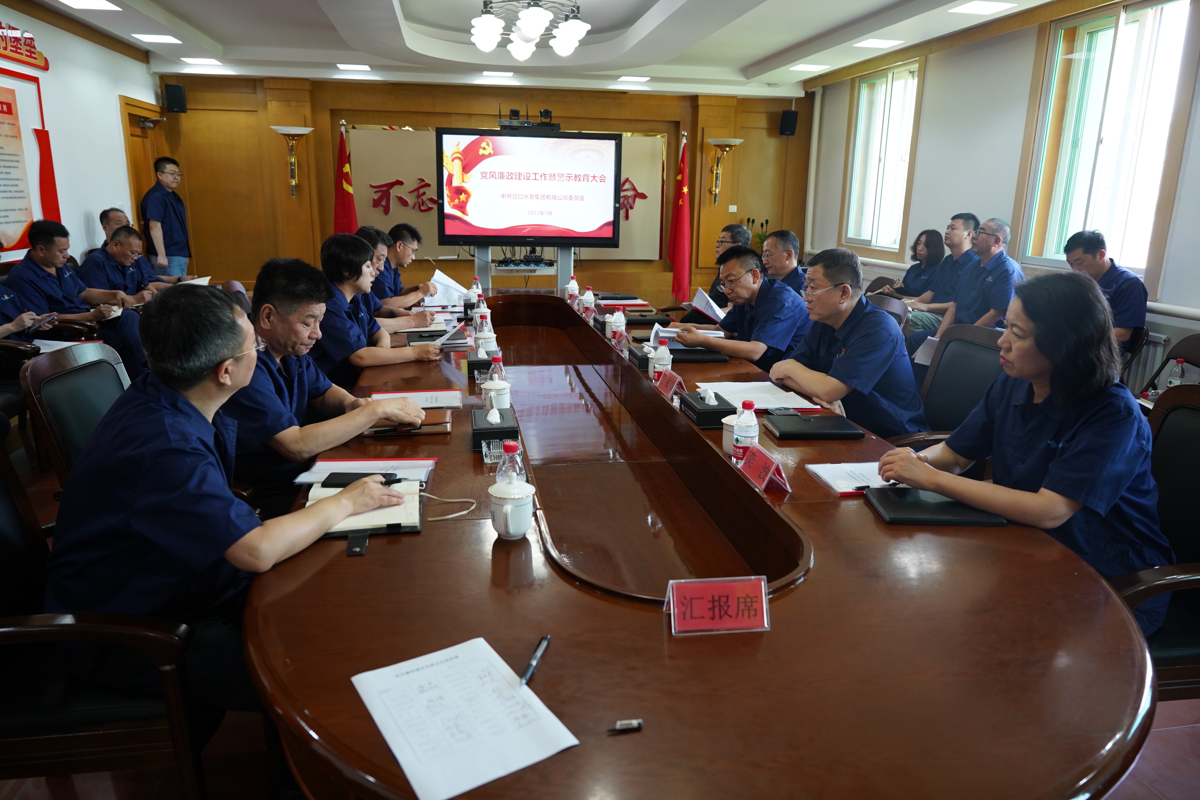 7月20日,水務集團召開黨風廉政建設工作暨警示教育大會,會議由紀委書記胡婷婷同志主持。集團領導班子成員及各部室、基層單位負責人參會。