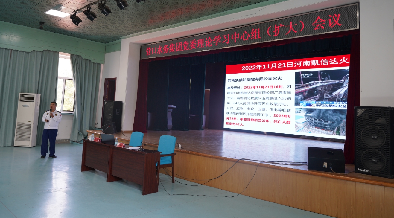 5月19日,營口水務(wù)集團(tuán)召開黨委理論學(xué)習(xí)中心組(擴(kuò)大)會議暨消防安全集中整治動員部署會議。集團(tuán)領(lǐng)導(dǎo)班子成員、中層管理人員及各單位班組長、安全員160余人參加會議。